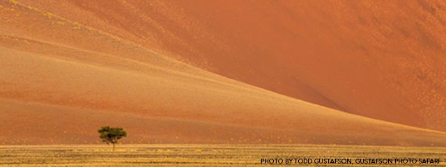 Day 3: Sossusvlei, PM. This was our chance to go out into the park and work with our favorite dunes from last evenings’ drive through. There was time to make beautiful compositions and talk about exposure. There were few people in today so we pretty much had the place to ourselves. The wind came up and swirled the red sand over the dune crest creating amazing patterns on the shade side. It looked like a sand storm on Mars. One of the coolest events I’ve photographed. On the way back to the lodge we had time to photograph some of the gemsbok grazing in the last golden light of the day. Supper and pack. Tomorrow is an early entry to Dead Vlei and off to a new adventure.