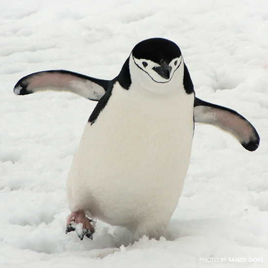 Despite their name, these penguins prefer the clean-shaven look. Easily recognizable by the narrow strip of black feathers under their chins, Chinstrap penguins can use all four limbs to climb out of the water and up steep slopes. Unlike the survival of the fittest approach of Adelie penguins, Chinstraps lay two eggs and treat both hatchlings equally.