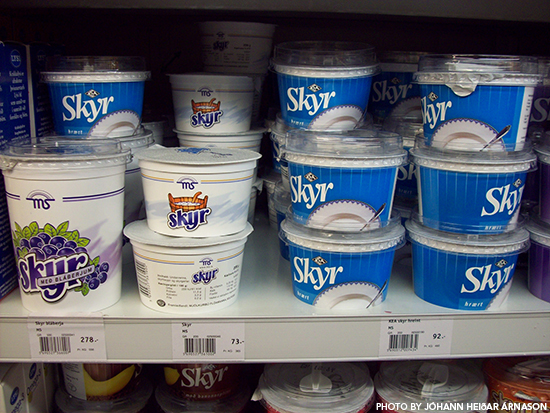 Not to be confused with yogurt, skyr is a popular snack in Iceland. Technically a soft cheese made of gelatinous milk curds, it is mixed with milk and served with sugar or Icelandic blueberries.