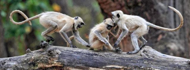 The Bengal tiger is the preeminent apex predator in India’s forests. Because all other animals are its prey, they’ve formed a loose communication network to signal when a tiger is on the move. Langur monkeys are the principal lookouts and usually the first and loudest to alarm, followed by spotted deer, sambar, and birds. Their alarm calls build to an explosive cacophony of howling, barking, bleating, whooping, and shrieking that follows the tiger.