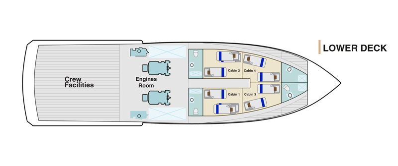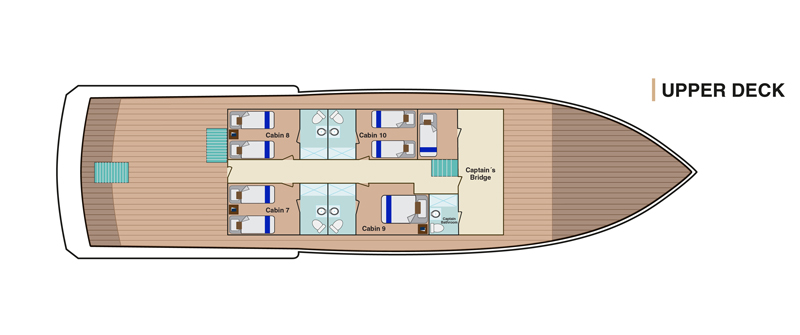 Stylish, sustainable, and fun, the M/Y Bonita was completely renovated in September 2019 and offers a comfortable and personalized small-group cruise experience. Common areas include a sundeck, dining room, well-stocked bar, conference area, and library. Snorkeling equipment and kayaks are provided, and wetsuits are available to rent.