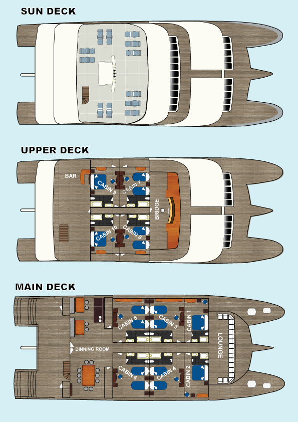 The Tip Top II was built in 2008 and redesigned in 2015-2016 to offer the highest level of comfort and the best experience in the islands as passengers discover the Galapagos marine life while snorkeling, panga riding or kayaking. Passengers can also read books about the Galapagos Islands aboard, as well as view selected movies and have fun with games.