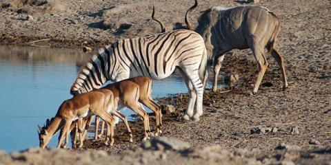 The Namib, the oldest desert in the world, dominates Namibia’s landscape. Take time for visits to surrounding safari areas, which are visually impressive, with exquisite flora, towering red dunes, bush country and fascinating geological formations while traveling through Namibia. The animals that roam the extraordinary landscape are just as breathtaking. Wildlife commonly seen on safari includes buck species, elephants, giraffes, rhinos, and lions. Hundreds of bird, reptile and amphibian species round out the incredibly diverse wildlife in Namibia’s numerous reserves.