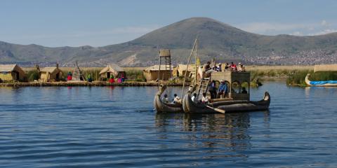 Today you will join others on boat adventure on Lake Titicaca to the floating islands of Uros, and then continue to Taquile Island. The trip takes three hours each way. The village sits at the top of 500 steps and holds a commanding view. At approximately 35 km by boat (be careful of sunburns during the trip) from Puno and of approximately 7 km in its biggest length, it's the dream island: no hotels, no roads, no electricity, no cars, not even bicycles or dogs. Pre-Inca terraces and small ruins demarcate the territory and the many alleys that will keep you busy. The community of Indians is very welcoming and tourism hasn't changed yet the way of life of this people of another time, dressed with traditional clothing and speaking only Quechua. It's an island that has learned to preserve a great ethnic and cultural value and also the traditions of textile handcraft. Overnight Casa Andina Premium Puno or similar