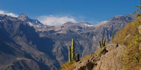This morning, you will travel to Colca Canyon. This is a scenic 4-hour bus ride to one of the deepest canyons in the world, which is approximately 11,000 feet deep. It is thought to be twice as deep as the Grand Canyon. Unlike most of the Grand Canyon, portions of the Colca Canyon are habitable, with pre-Columbian terraced fields still supporting agriculture and human life. On the trip, drive across Pampa Cañahuas in the Aguada Blanca National Reserve, inhabited by herds of vicuñas and alpacas (South American cameloids). The highest point of the road is at 14,271 feet above sea level. Pass through the high plains (Altiplano) and down to the village of Chivay, the biggest town of the valley of Colca. You will enjoy a nice traditional lunch at the town of Chivay. Chivay is located at an altitude of nearly 12,000 feet and is the largest town in the Colca Canyon. You will have time to explore the town and market and meet with a local craftswoman, where you will learn about Colca embroidery, which often features the native Colibrí Gigante or Giant Hummingbird, the largest hummingbird in the world. This evening, you will enjoy dinner at the hotel with a musical presentation honoring the Andean Condor.